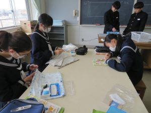 今使用している家庭科ファイルを2年次、3年次にも使えるよう、自分の好きな布を用いてファイルカバーを製作しています。