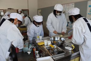 感染症対策を踏まえ、少ない人数で調理できるようペアを組んで調理し、試食は教室で行いました。