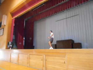 明日は運動会です。生徒会長の話の後、全員で気合いを入れました。西條中生の心がひとつになった瞬間でした。