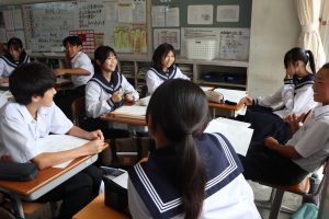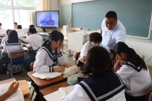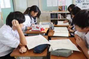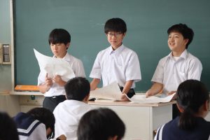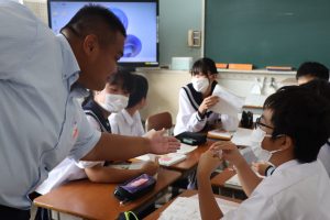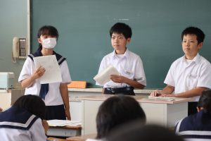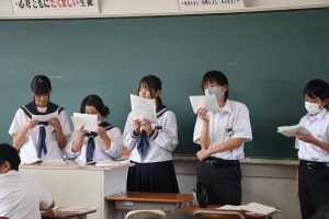 授業風景 1年3組 国語(大人になれなかった弟たちに) 2025年10月3日 1年生, トピック, 令和7年度2学期, 学校生活の様子 1年生の国語科の授業では、 戦時中、作中の人物がどのように生きていたのかを、行動描写、心内描写、情景描写に基づいて読みを深めました。 生徒たちは、叙述に基づきながら、主体的に本文を読み進めていました。