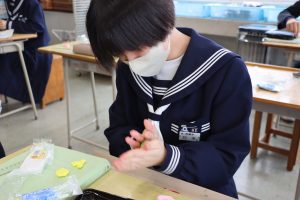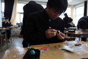 2年2組 美術科(和菓子のデザインをしよう) 2025年12月21日 2年生, トピック, 令和7年度2学期 2学年の美術科の授業では、紙粘土を使って和菓子のデザインをしています。 四季の移り変わりをイメージして制作をしています。